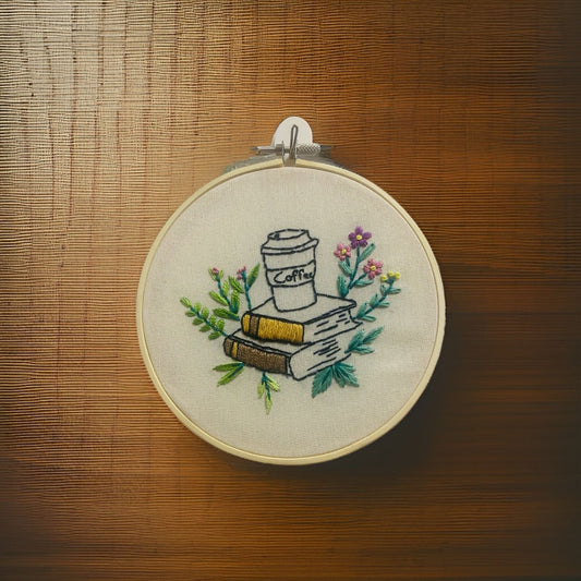 Elegant Monochrome Lady with Red Umbrella Embroidery